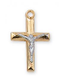 Gold Over Sterling Silver Crucifix Necklace With 18 Inch Gold Plated Brass Chain and Deluxe Gift Box