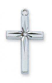 Sterling Silver Cross Necklace With 18 Inch Rhodium Plated Brass Chain and Deluxe Gift Box