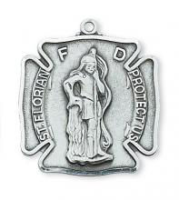 Sterling Silver St. Florian Medal Necklace With 24 Inch Rhodium Plated Brass Chain and Deluxe Gift Box