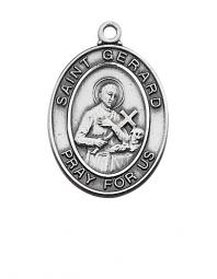 Sterling Silver St. Gerarc Medal Necklace With 18 Inch Rhodium Plated Brass Chain and Deluxe Gift Box